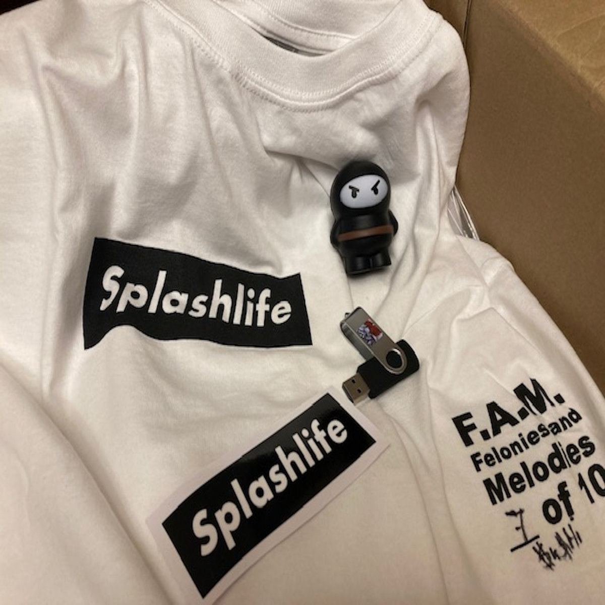 • yes that's right... psj SUSHI is back at IP with his all new album 'FELONIES and MELODIES'! and now you have the opportunity to snag one of his limited to 50 exclusive psj SUSHI 'SPLASHLIFE' PACKS! each pack comes complete with 'SPLASHLIFE' t-shirt, cover printed thumb drive with full 'FELONIES and MELODIES' album, a 'SPLASHLIFE' vinyl sticker, a ninja squishy and an instant digital download of the 'FELONIES and MELODIES' album.